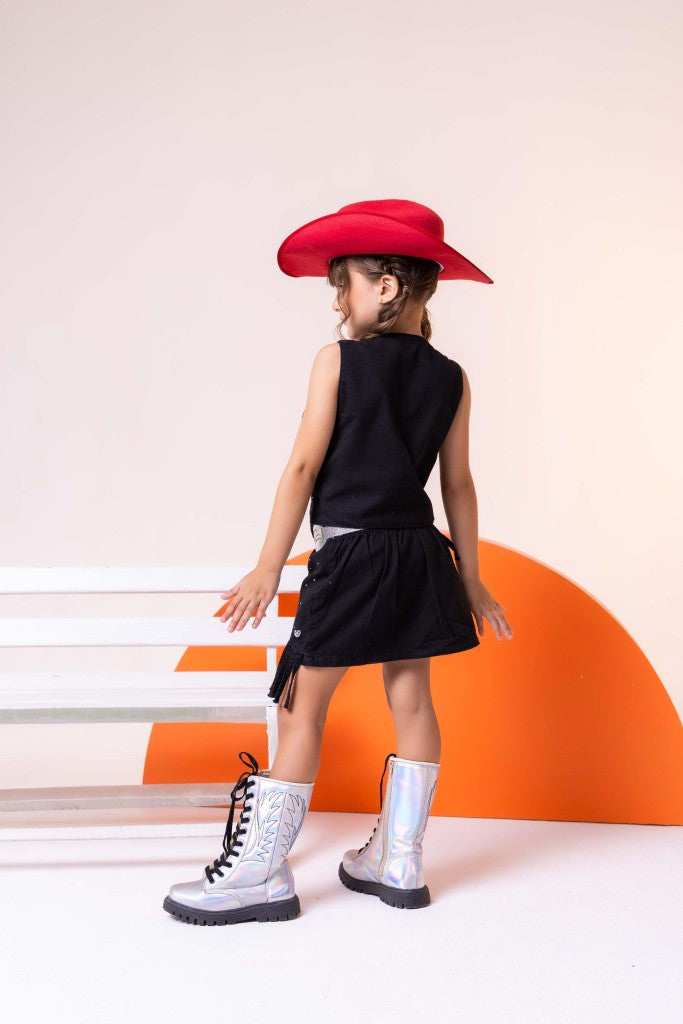 Conjunto Blogueirinha Boiadeira Jeans Preto Estiloso