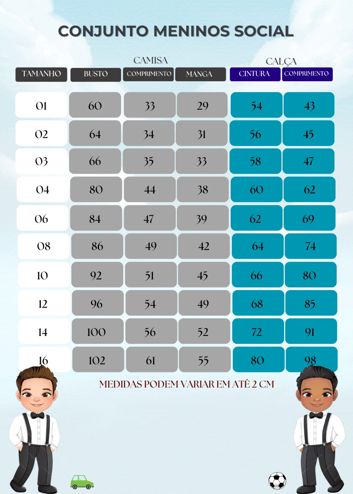 Conjunto composto por: Camisa social na cor branca, gravata borboleta, cinto, suspensório e calça na cor linho.