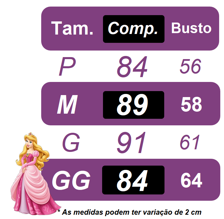 * Não é possível customizar as medidas, pois são padrão e a pronta entrega;