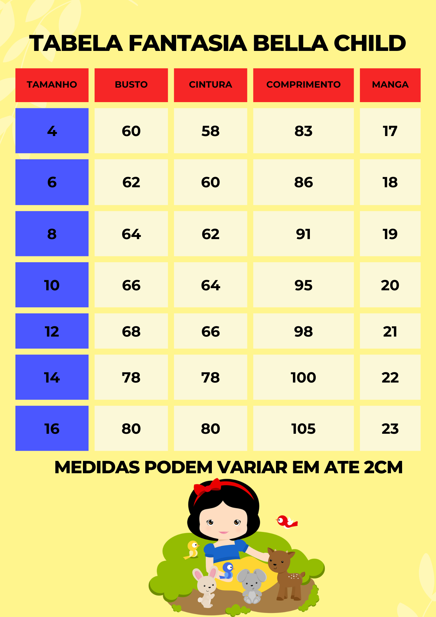 * Medidas podem variar em até 4cm