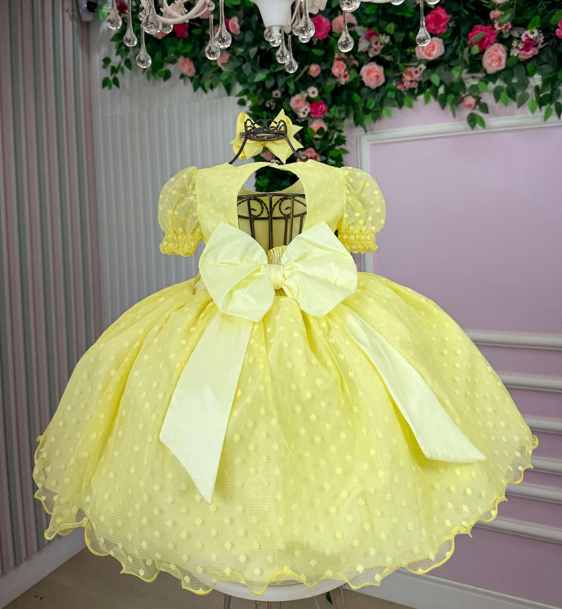 - Acabamento com Laço: O lindo laço na parte posterior do vestido adiciona um charme extra e um detalhe especial.