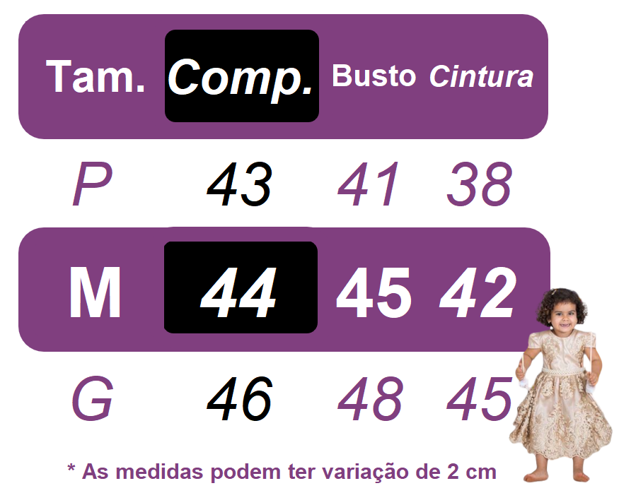 Perfeito para meninas que desejam brilhar em batizados ou festas, este vestido é uma escolha encantadora com sua combinação de beleza e conforto. Não se esqueça de verificar as medidas na tabela disponível nas fotos para garantir o ajuste perfeito!