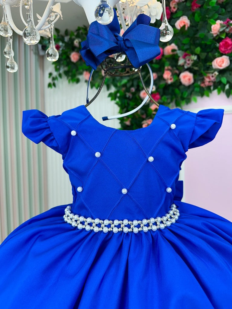 Vestido Infantil Azul Royal em Cetim com Saia Rodada para Festa de Aniversário