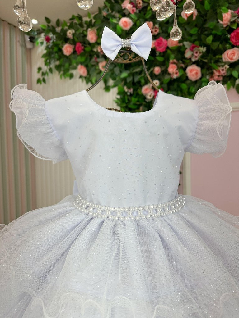 Perfeito para meninas que desejam brilhar em celebrações especiais. Uma escolha encantadora com um laço adorável que adiciona um toque extra de charme. Não perca a oportunidade de fazer sua pequena se sentir única e especial com este maravilhoso vestido!