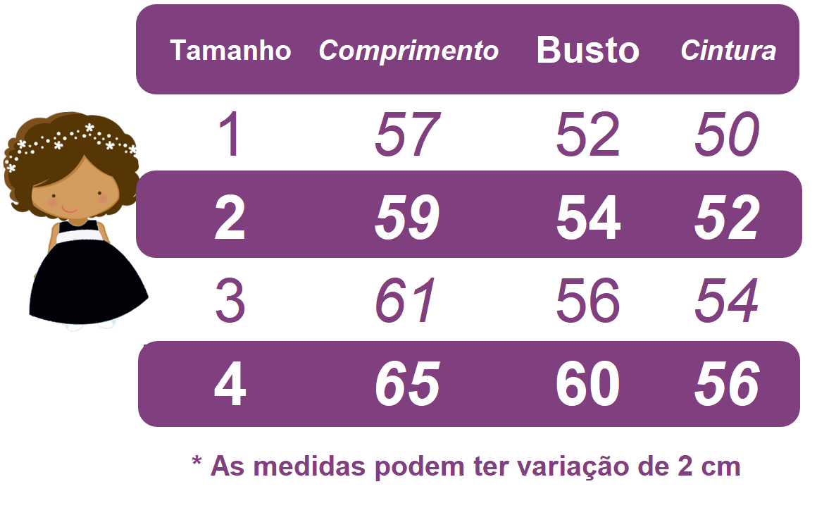 - Ajuste Perfeito: Disponível em várias medidas, é importante comparar as medidas da criança com a tabela para garantir um ajuste adequado.