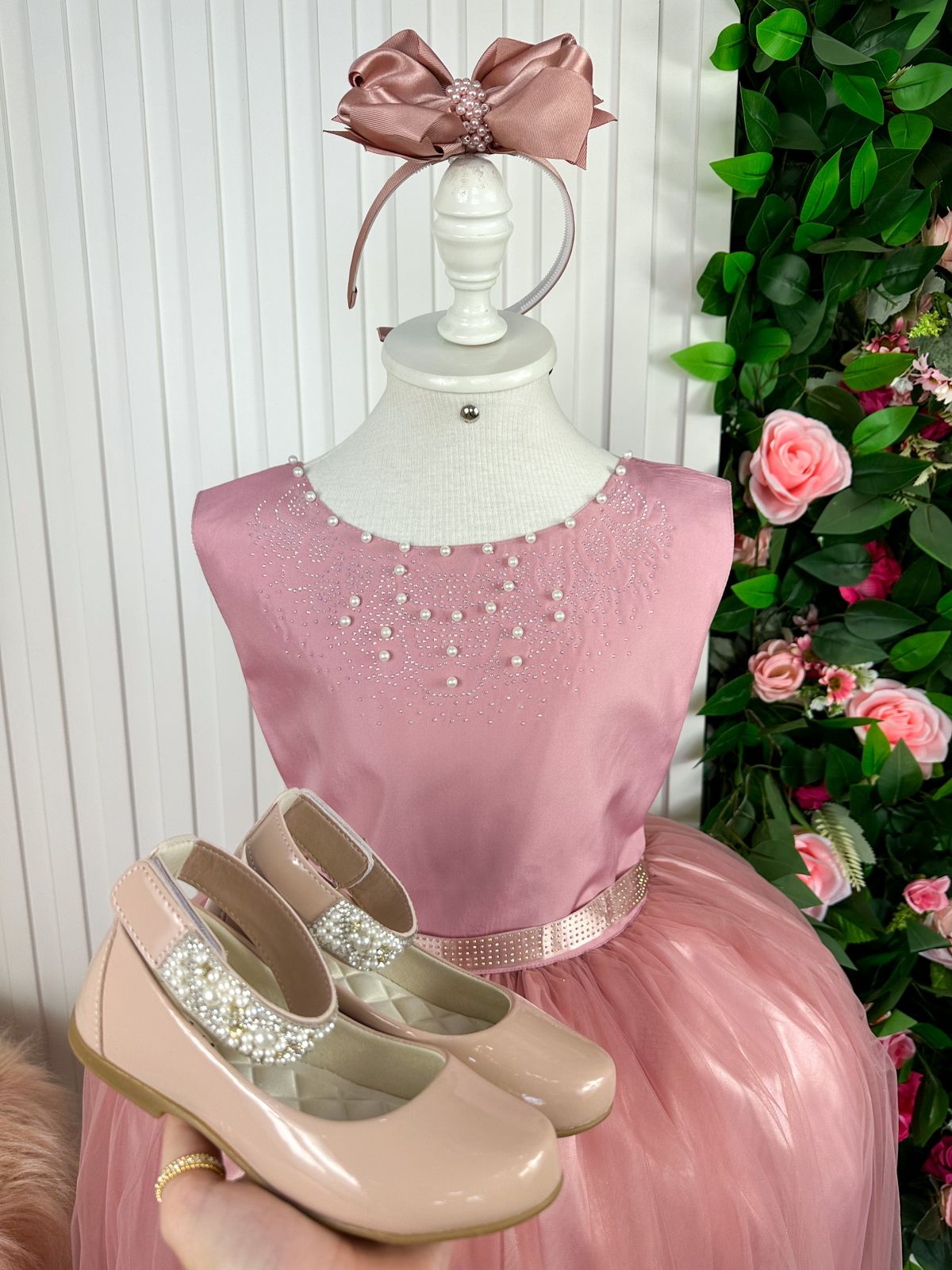 Confeccionado em tecido misto possui forro em poliéster e algodão para não incomodar a criança e proporcionando um caimento incrível e sofisticado, possui gola redonda, comprimento médio, mangas curtas, contém, também, elástico nas costas para melhor ajuste, acabamento com lindo laço na parte posterior do vestido completa o look dos sonhos!
