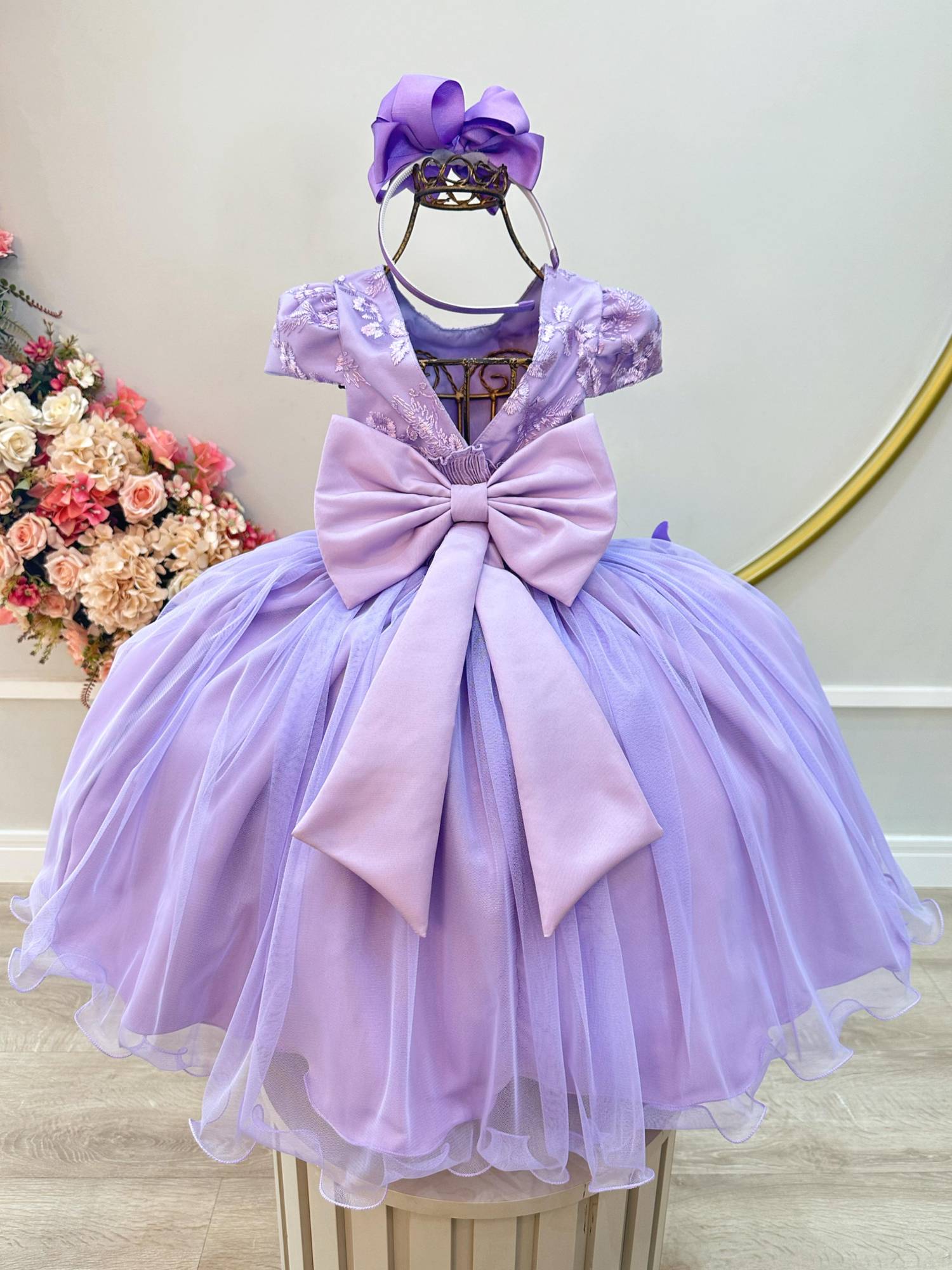 Vestido Infantil Lilás Apliques Flores e Borboletas Festas