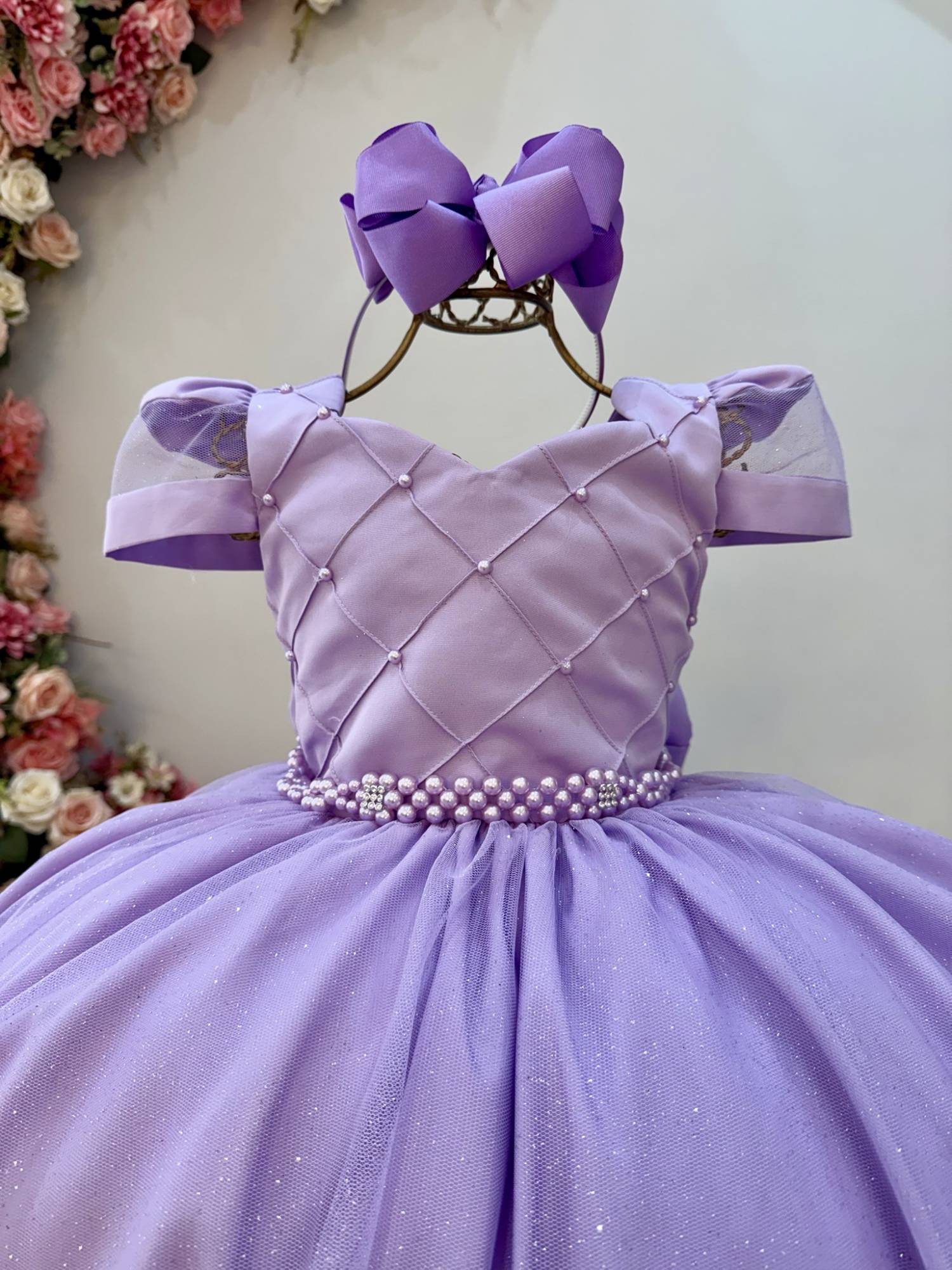 Vestido Infantil Longo Lilás Busto Nervura C/ Pérolas Damas