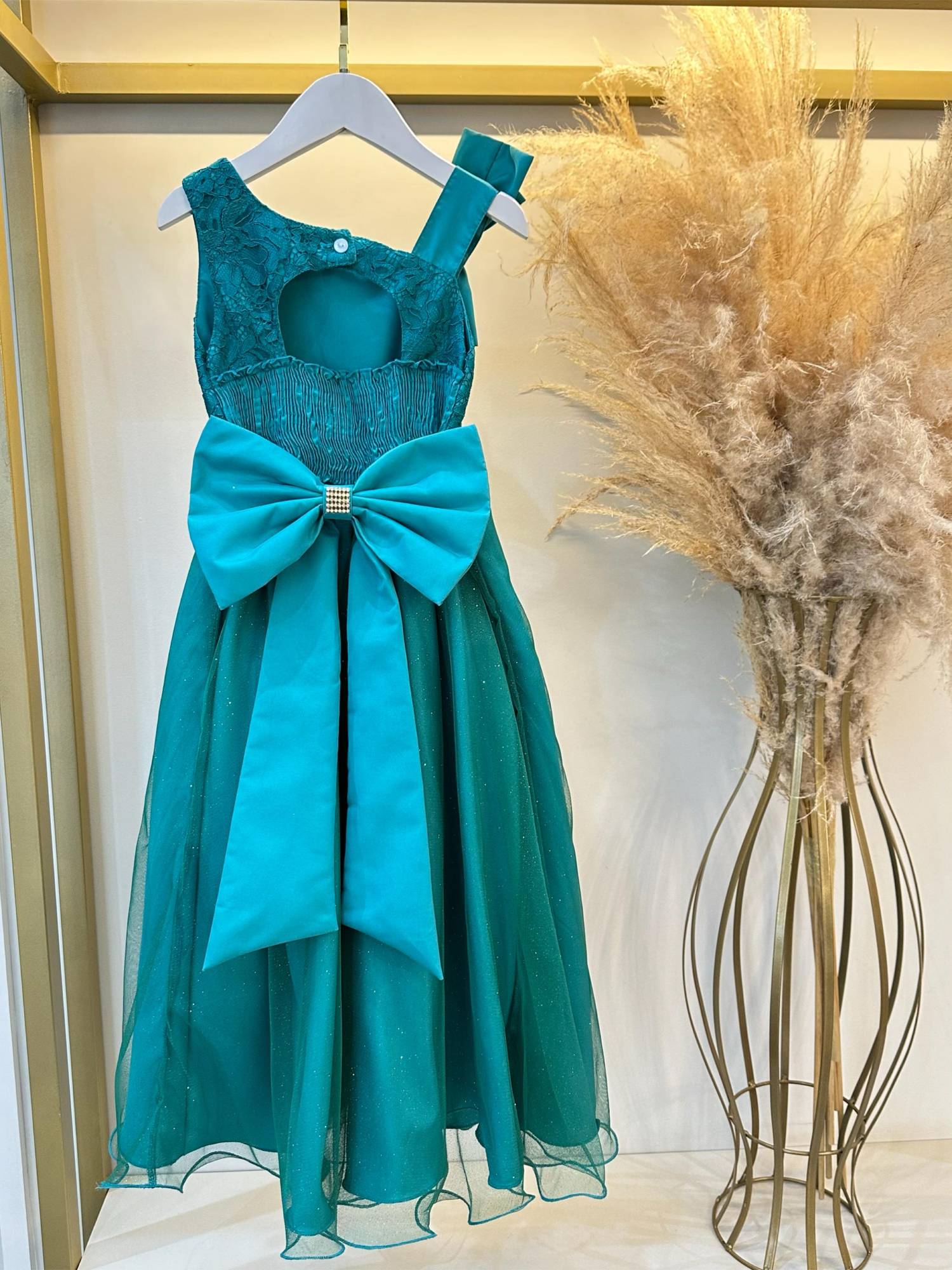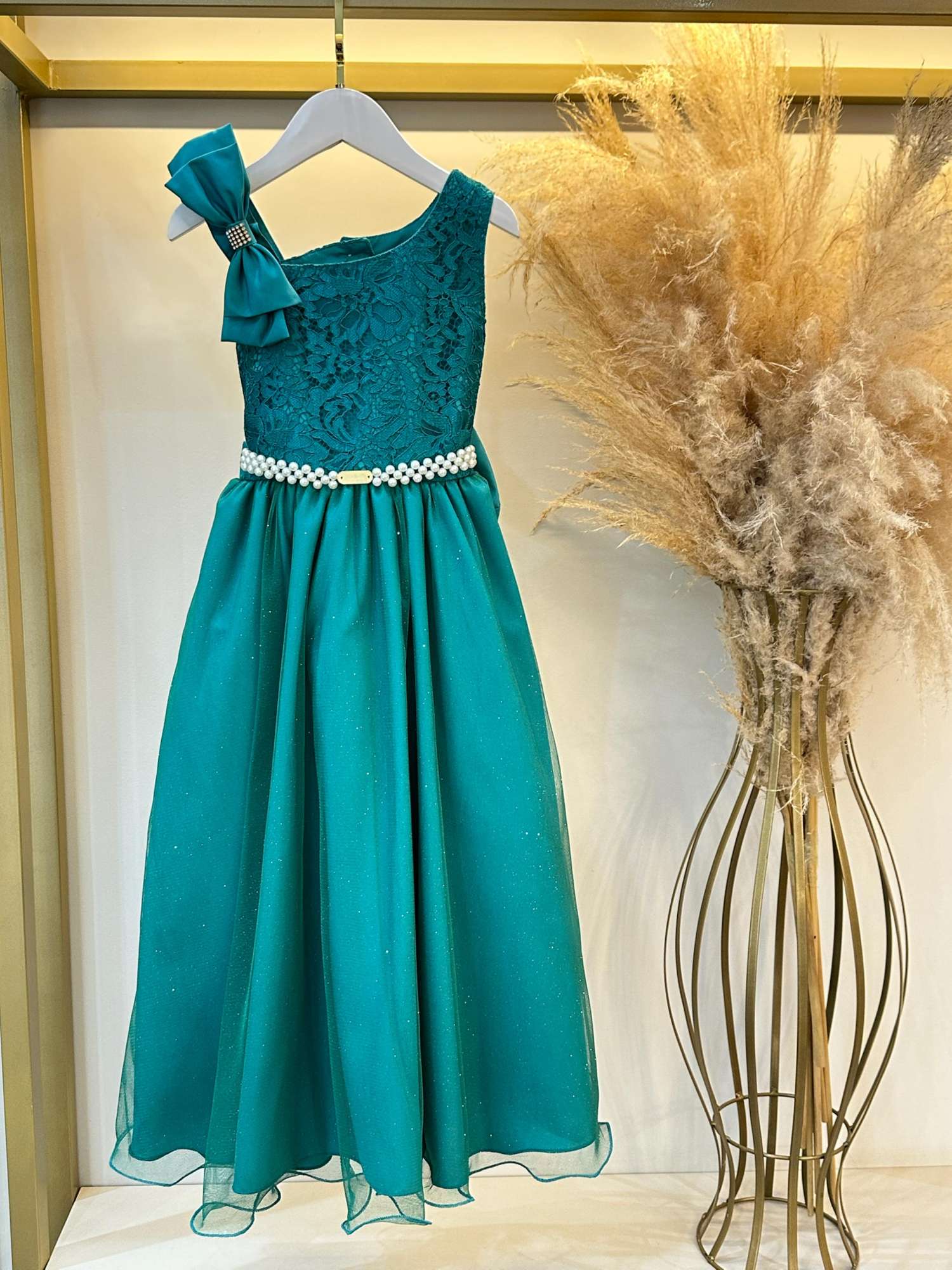 Vestido Infantil Longo Verde Busto Renda Festas Daminhas