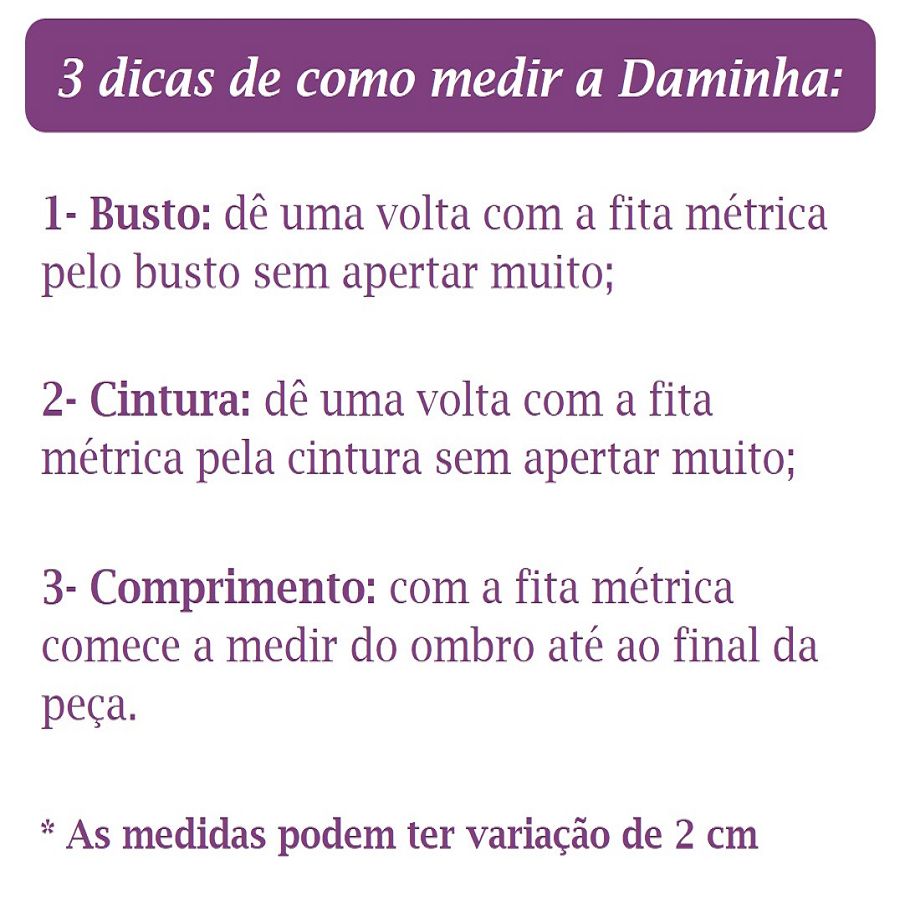 Produto delicado: lavar sempre à mão, preservando os detalhes e tecidos.