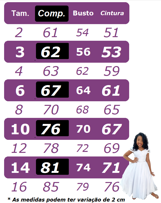 Perfeito para aniversários, festas e eventos especiais, este vestido é uma escolha encantadora para meninas que desejam brilhar em qualquer ocasião. Além disso, para um efeito ainda mais volumoso, sugerimos o uso de uma anágua (saiote), que pode ser adquirida separadamente.