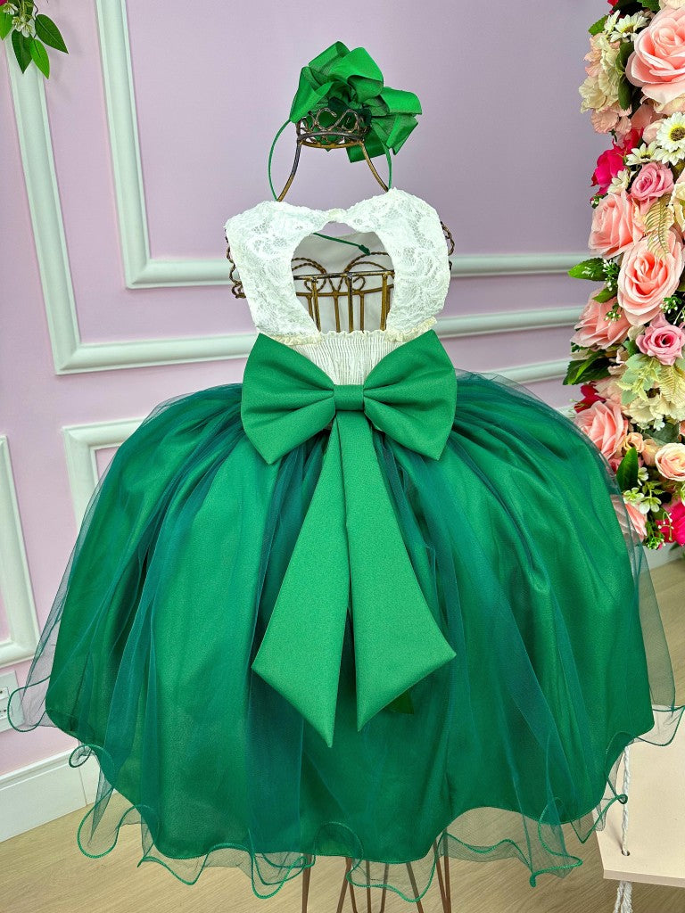 Vestido Infantil Off em Samambaia Escura com Saia Verde Vibrante e Design Moderno para Festa de Aniversário