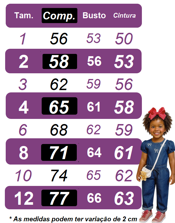 * Compare as medidas da criança com as medidas da tabela que está nas fotos, não compre pela idade, e sim pela tabela de medidas;