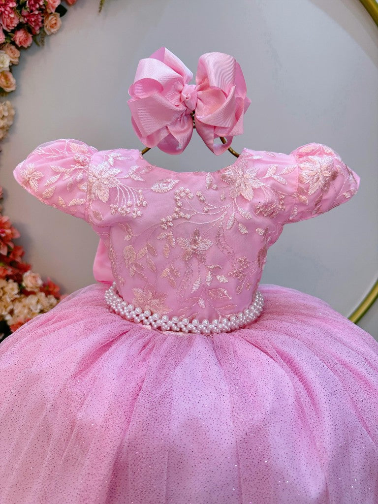 Vestido Infantil Rosa Claro C/ Renda Daminhas de Honra Longo