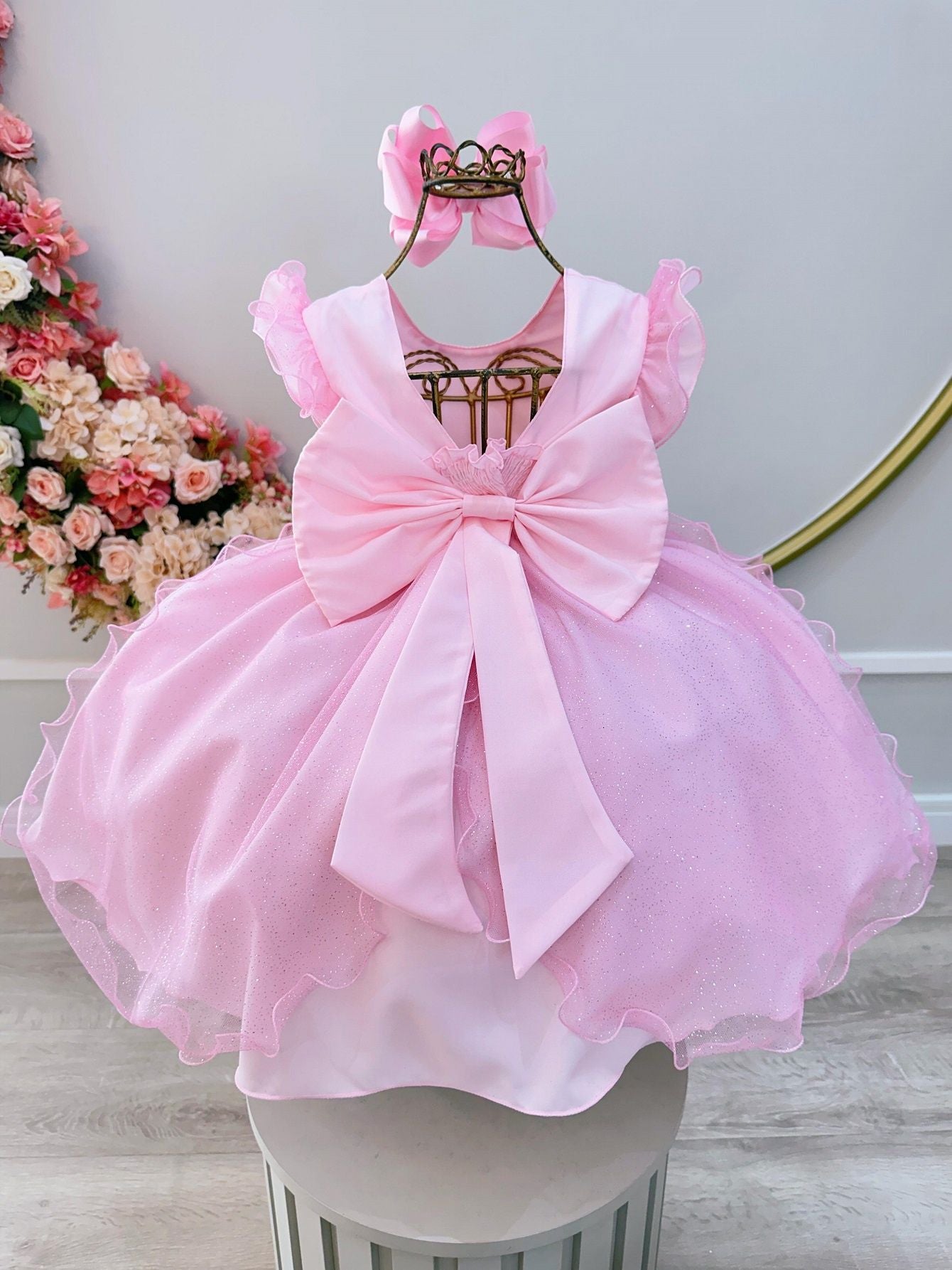 O Vestido Infantil Rosa Claro em Tule com Glitter Saia Rodada para Daminhas oferece um visual encantador e elegante, ideal para casamentos, festas e eventos especiais. Este vestido é perfeito para deixar sua daminha ainda mais linda e radiante!