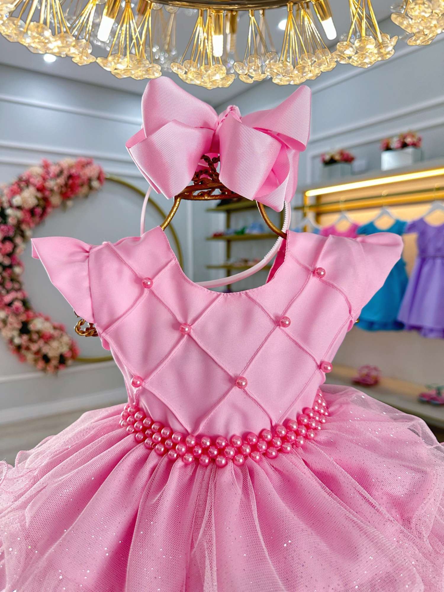 Vestido Infantil Rosa em Tule com Babados Luxuosos para Festa
