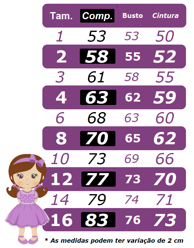 * Compare as medidas da criança com as medidas da tabela que está nas fotos, não compre pela idade, e sim pela tabela de medidas;