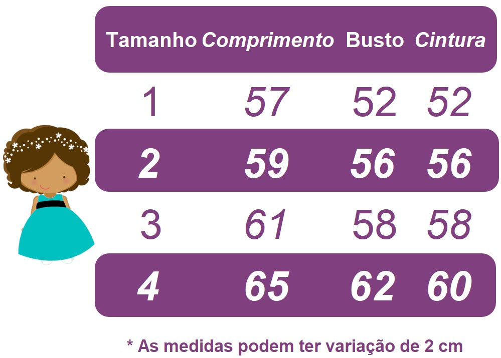 - Design Armado: Para um visual ainda mais encantador, sugerimos o uso de anágua (saiote), que pode ser adquirido separadamente.