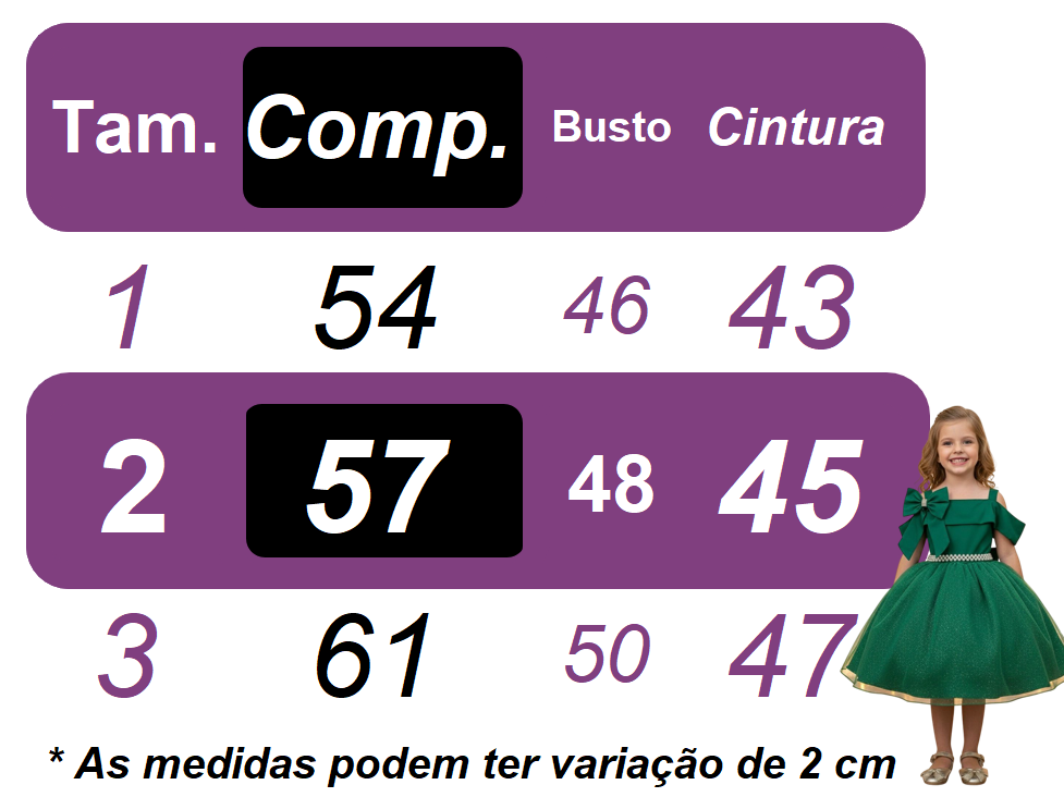 * Laço, tiara e acessórios que acompanham a foto poderão não fazer parte do vestido e são vendidos separadamente;