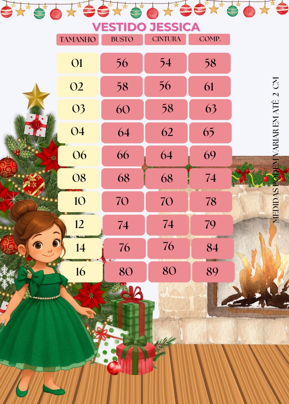 Ideal para a Coleção Natal, esse modelo une a magia da data com a delicadeza dos detalhes, transformando cada menina em uma verdadeira princesa natalina.