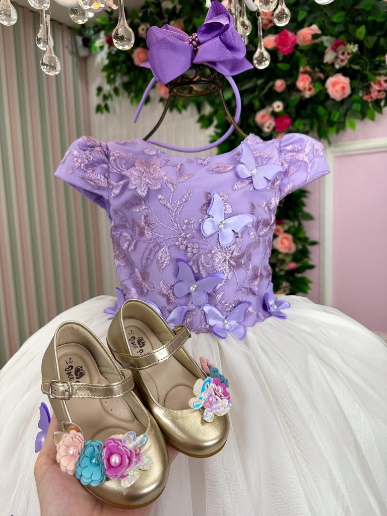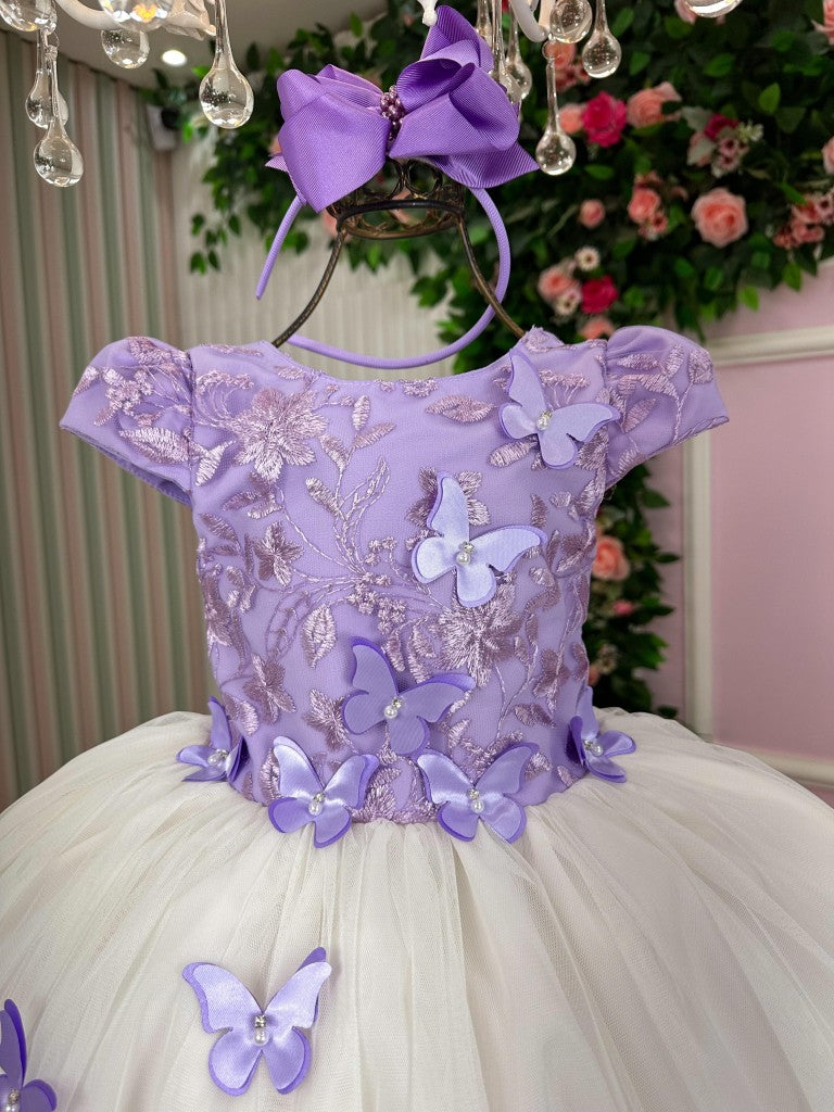 Vestido Juvenil - Midi Elegante em Lilás e Off White