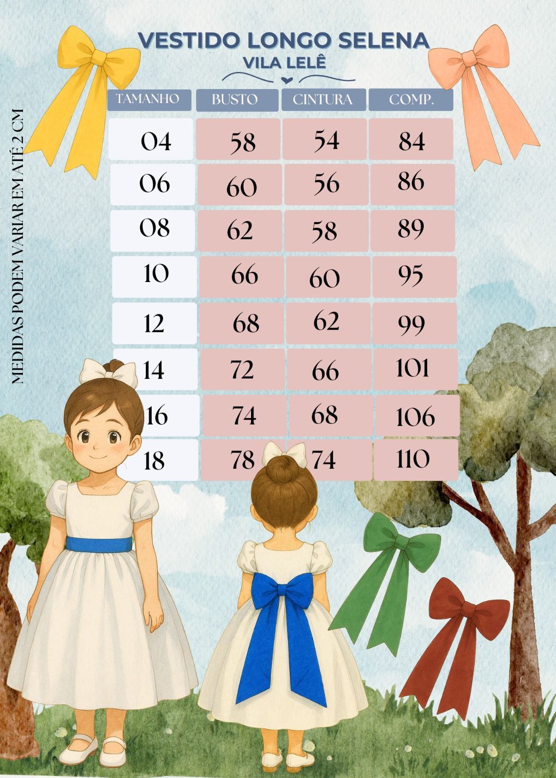 São várias opções de cores para você escolher, combinando o vestido com o tema da festa ou com o estilo da sua pequena cliente.