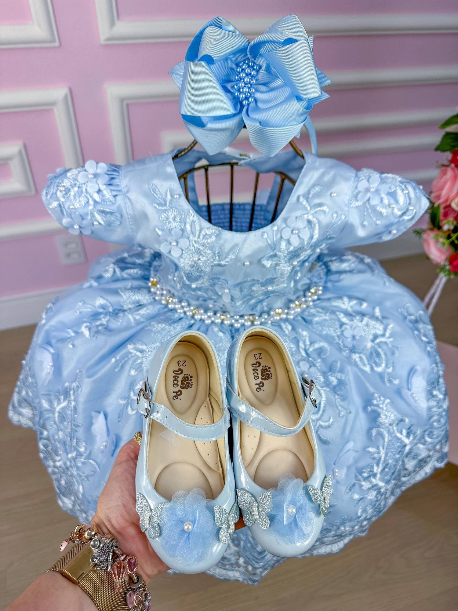 Vestido Marie Jardim Encantado Realeza Azul Bebe