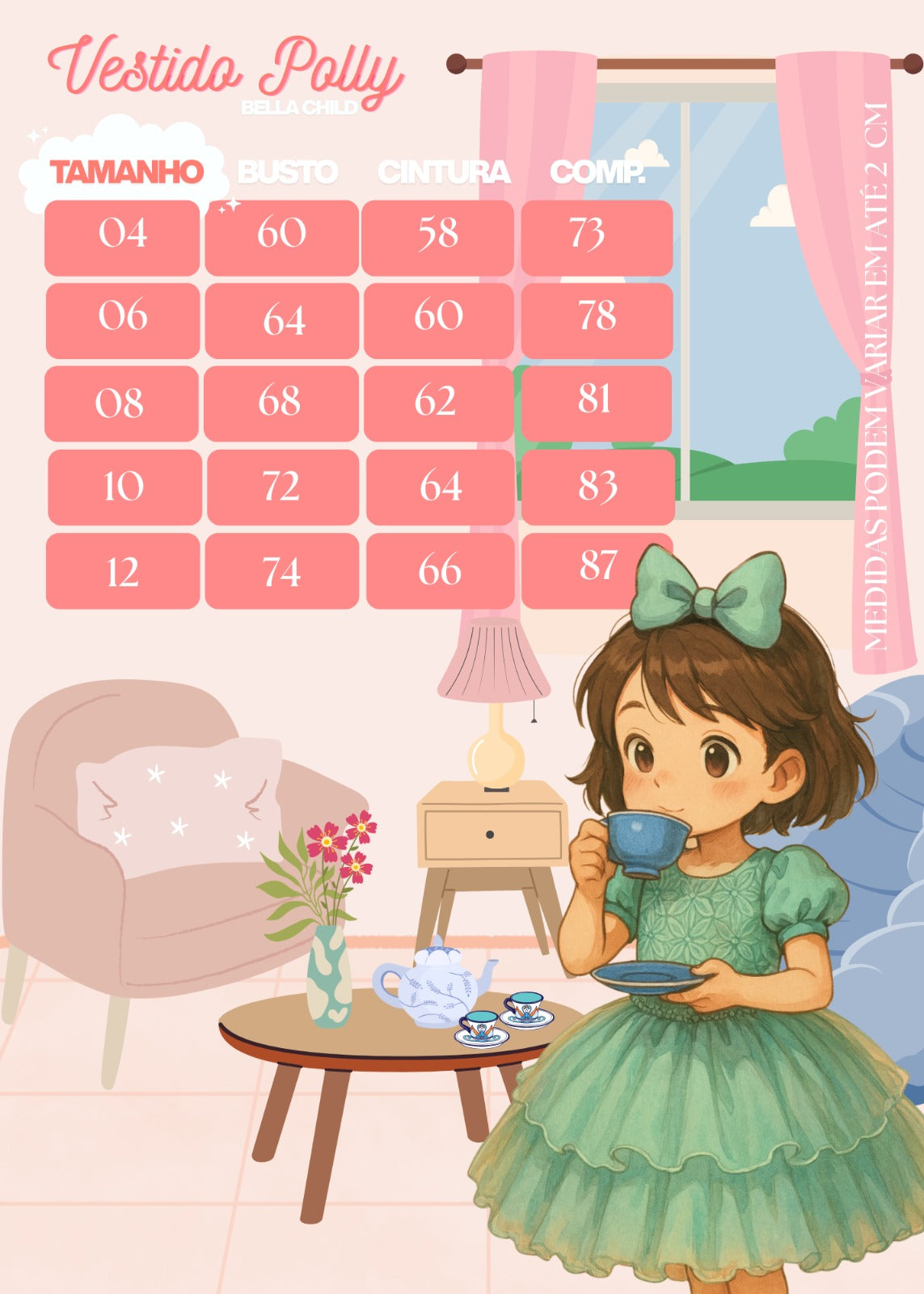O vestido Polly é aquele tipo de peça que chega devagarinho e, quando você percebe, virou o favorito da criança e da mãe. Delicado, volumoso e com aquele brilho suave de princesa moderna, ele funciona tanto para festa grande quanto para aquele aniversário intimista que a família inteira fotografa.